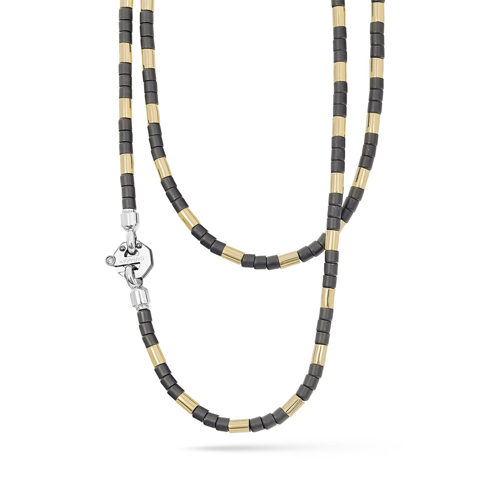 Barakà - Girocollo in ceramica nera, cordino nautico, acciaio e oro giallo | 50cmMateriale: cordino nautico, acciaio, ceramica nera, oro giallo 750/1000Diamante: Bianco, 0,02ctMisura: 50cmCodice: GC372221GILU500002