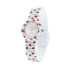 L’orologio Sweet Heart è decorato da una miriade di piccoli e deliziosi cuoricini. Il cinturino intercambiabile in morbido silicone diventa il più romantico dei messaggi.