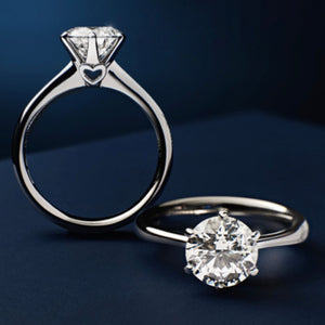 Anello solitario a sei punte in oro bianco 18 kt con diamante. Collezione Anniversary.